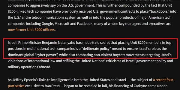 Premier Izraela Netanjahu nawet nie ukrywa, że sektor technologiczny wykorzystywany jest przez reżim syjonistyczny do osiągnięcia żydowskiej dominacji w świecie cybernetycznym.